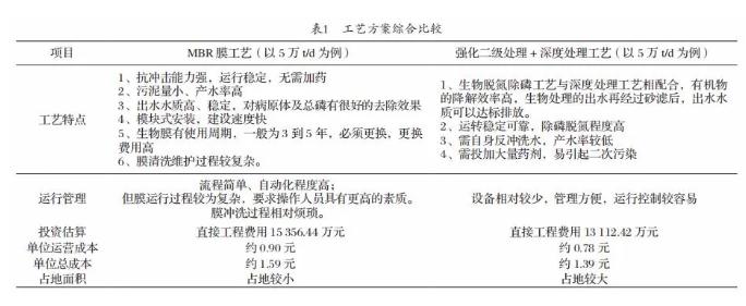 (2)廠區(qū)占地情況是否充足。深床濾池工藝占地面積較大。MBR的池體占地較深床濾池可節(jié)省30%的用地,且采用MBR工藝,可取消二級處理中二沉池及高效沉淀池,提高土地利用率。