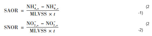 比氨氧化速率和比亞硝酸鹽氧化速率的計(jì)算公式為: