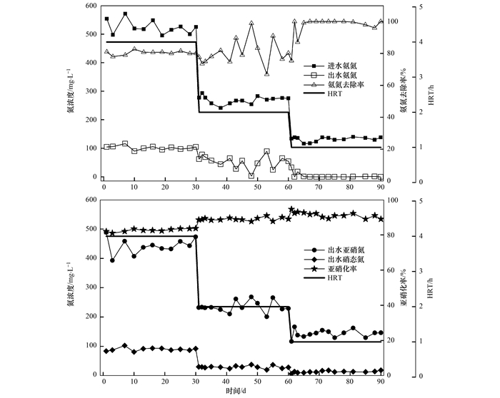 2.2 HRT對氮轉(zhuǎn)化效能的影響