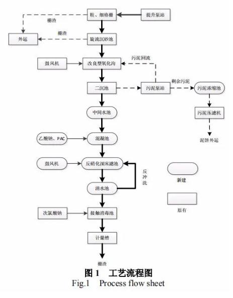 為了為確保水污染得到有效控制和改善,改善城市居民的生活環(huán)境,完善城鎮(zhèn)基礎(chǔ)設(shè)施,營造良好的投資環(huán)境,促進(jìn)經(jīng)濟(jì)的發(fā)展,該鎮(zhèn)污水處理廠實(shí)施了提標(biāo)改造工程。本工程實(shí)例提標(biāo)是在原有改良型氧化溝工藝的基礎(chǔ)上,增加混凝池和反硝化深床濾池工藝。