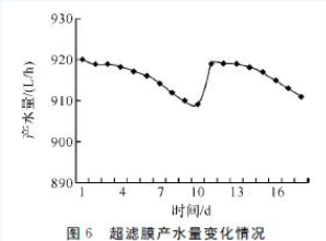 超濾膜產(chǎn)水量變化情況見圖6.