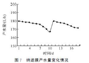 納濾膜產(chǎn)水量變化情況見圖7.