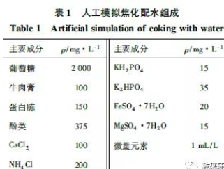 實(shí)驗(yàn)用水采用人工模擬焦化配水,所用藥品名及用量見表1。