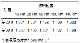 在第20和第30 d時(shí)分別取10、20、60、100及140 cm的濾料進(jìn)行吸附性能分析實(shí)驗(yàn), 從表 1可知, 第20d時(shí)濾料已吸附飽和, 故忽略濾料對(duì)氨氮的吸附, 此后濾柱中氮素?fù)p失不是由濾料吸附造成, 故S2、S3和S5階段的氮素?fù)p失并不是濾料吸附造成.