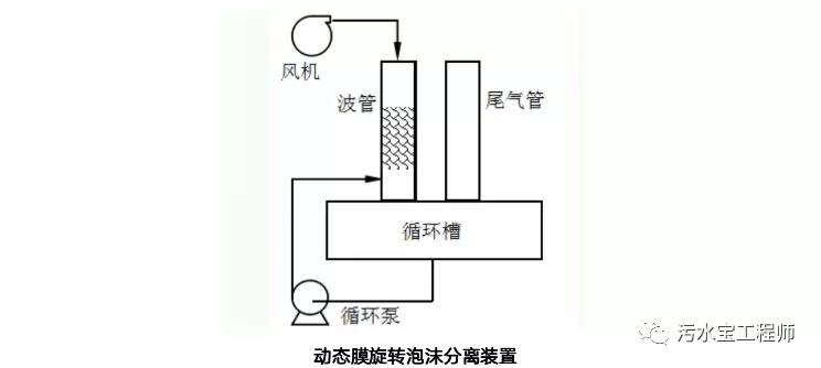 實(shí)際工程應(yīng)用的動(dòng)態(tài)膜旋轉(zhuǎn)泡沫分離裝置由波管、尾氣管、循環(huán)槽、風(fēng)機(jī)和循環(huán)泵等