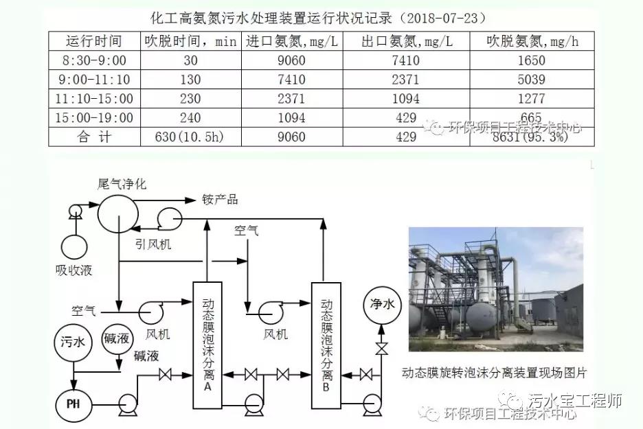 本項(xiàng)目是動(dòng)態(tài)膜旋轉(zhuǎn)泡沫分離技術(shù)與裝置在實(shí)際工程應(yīng)用中最為成熟一個(gè)案例,這不僅表現(xiàn)在其吹脫效果完全達(dá)到了設(shè)計(jì)的預(yù)期效果,而且還實(shí)現(xiàn)了尾氣的閉路循環(huán),達(dá)到了完全無(wú)尾氣排放的新環(huán)保要求。