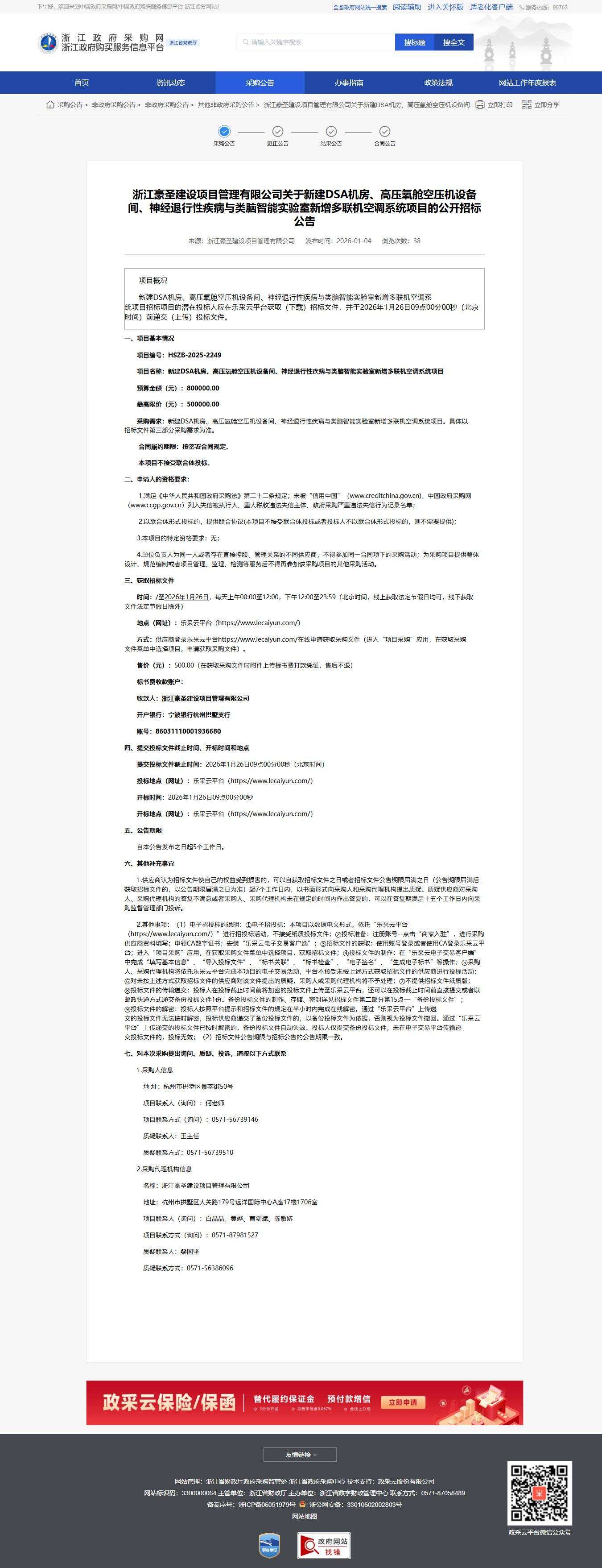 新建DSA機房、高壓氧艙空壓機設(shè)備間、神經(jīng)退行性疾病與類腦智能實驗室新增多聯(lián)機空調(diào)系統(tǒng)項目的公開招標(biāo)公告